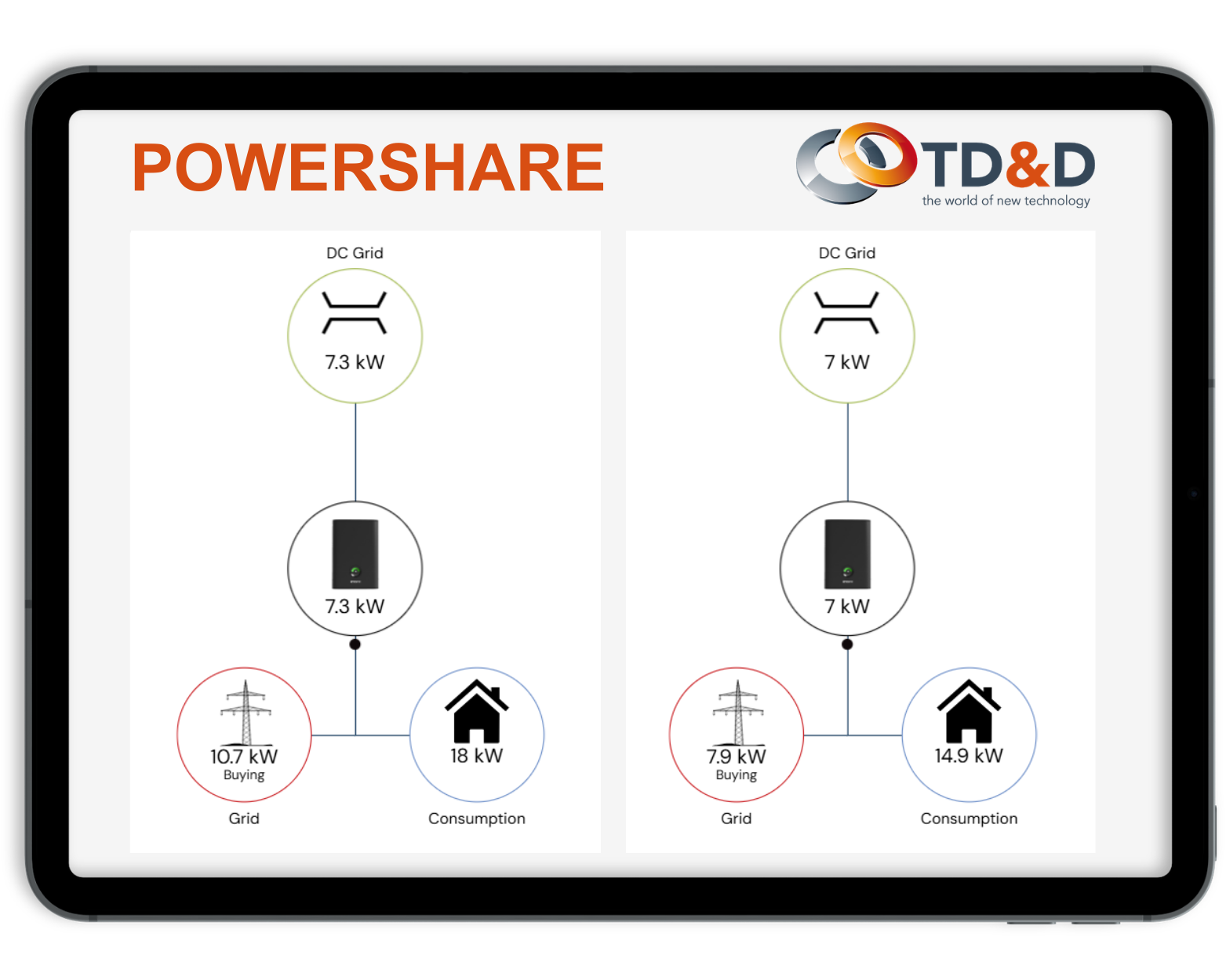 Een klant kreeg van de netbeheerder slechts 80 ampère, terwijl er 160 nodig was voor het nieuwe bedrijfspand. Dankzij PowerShare kon TD&D de twee bestaande aansluitingen koppelen. Het resultaat: voldoende vermogen om het pand, de laadpalen en de productie-installaties toch in gebruik te nemen.